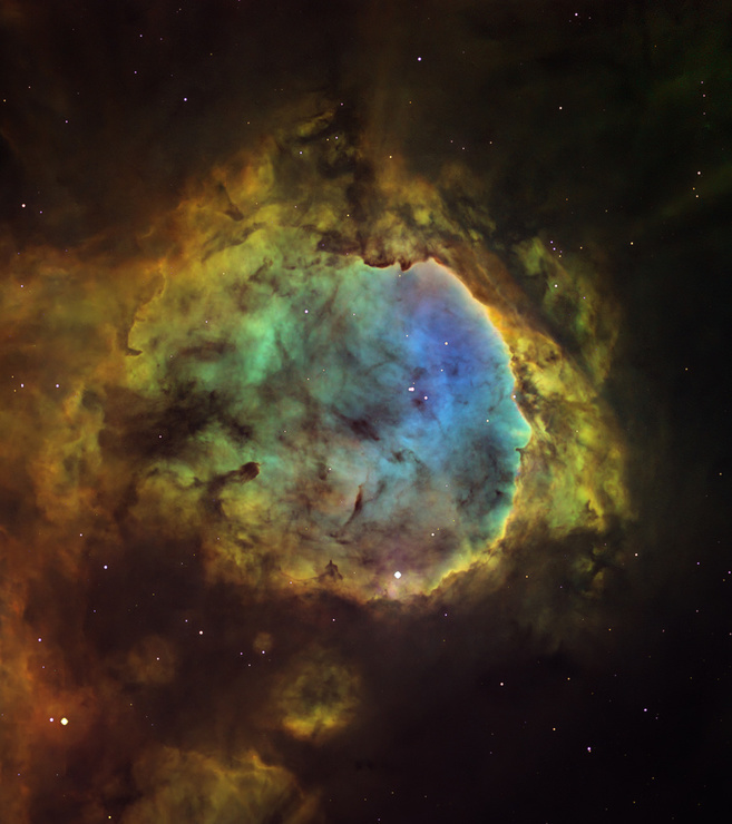 When radiation and winds from massive stars impact clouds of cool gas, they can trigger new generations of stars to form. This is likely what's happening in this object, a region of the Elephant's Trunk Nebula