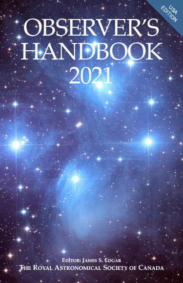 Observer's Handbook 2021 This book, put out by the Royal Astronomical Society of Canada, is an excellent resource. Its 352 pages have articles, charts, and tables for the year 2021. It is generally geared for North America.