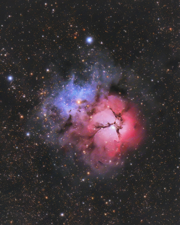 Reddish NGC 20 and it's smaller bluish neighbor NGC 2020 belong to the same star forming region.