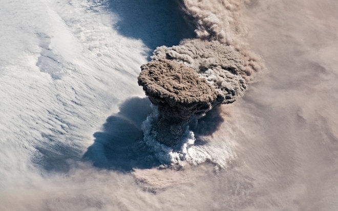 The volcano Raikoke, which last erupted in 1924, expelled an enormous ash plume on June 22. Nice view from space.