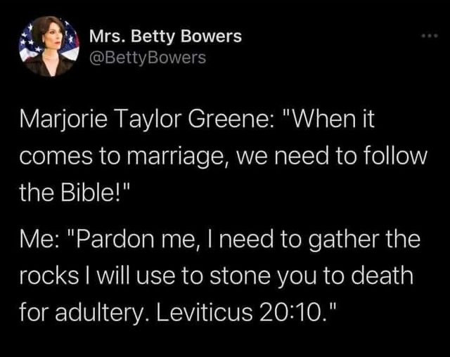 And this is the behavior that followers of Abrahamic religions have emulated for centuries. The Bible is an ancient and anachronistic source of hatred and mistreatment of women and should not be part of any public discourse in 2024.