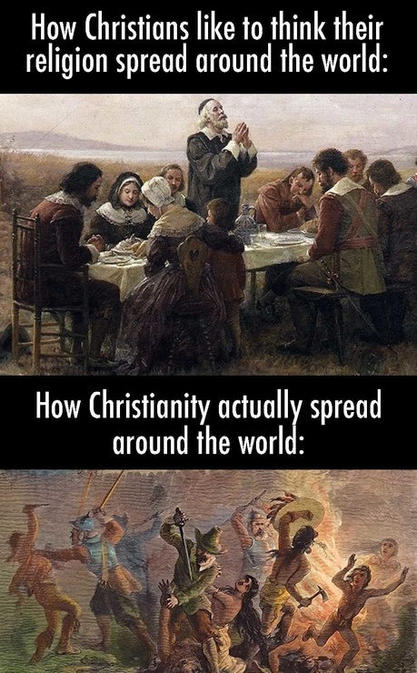 Christians like to believe that their religion spread around the world by people voluntarily abandoning their own cultural traditions in favor of the obvious superiority of Christianity. Christians like to think that they prayed their way to global ...