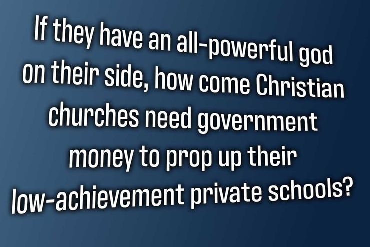 Posted by CliffordCookIf Christians really believe in a god that is all powerful and will provide for all their needs, why do they keep on demanding taxpayer support for their struggling religious schools?