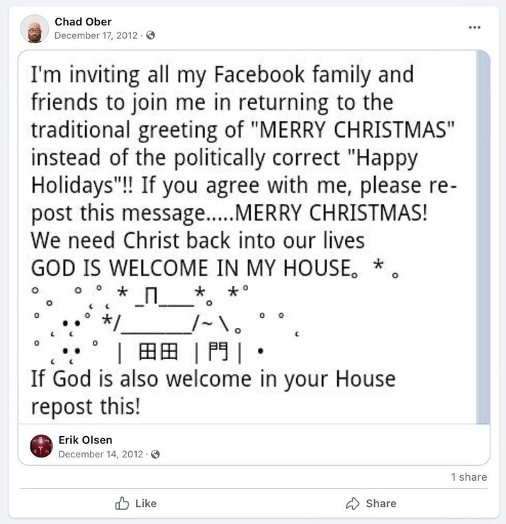 I groaned when I saw this Christian Nationalist Christmas meme posted by one of Donald Trump's supporters in Iowa. Then, I smiled when I saw how many of his Facebook friends had reposted it.