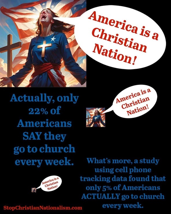 Christian Nationalists like to insist that the United States of America is a Christian nation. What do the facts show? In fact, only 22% of Americans SAY that they go to church every week. What’s more, a recent study using cell phone tracking ...