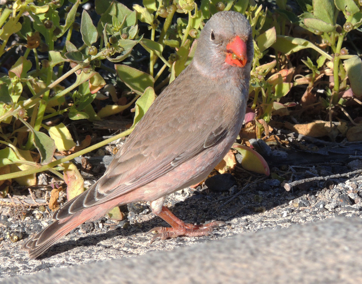 I took these Trumpeter finch a few years ago in the Canary Isles, they were very tame, I did not need a zoom lens, I guess they were hungry...