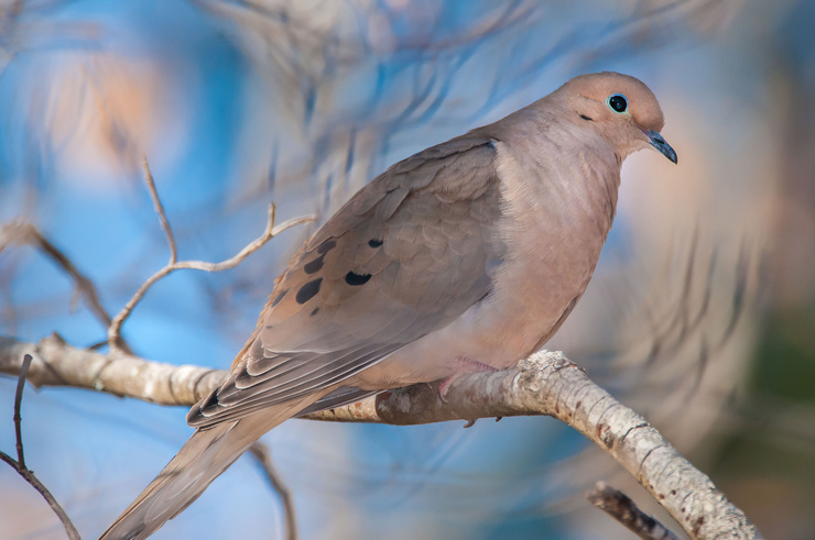 Mourning Doves are the most common bird who visit us. They are incredibly skiddish and very hard to sneak up on. I was in my tent/blind to get this shot. Up close they are pretty birds. My favorite thing about them is how they sound like their wings ...