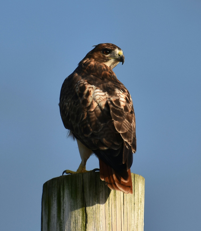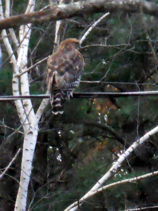 Caught this Hawk landing on the power lines outside the front windows. Might have said "Holy shit! Look at that Hawk!". Can't believe the camera would focus through the window to catch it though.