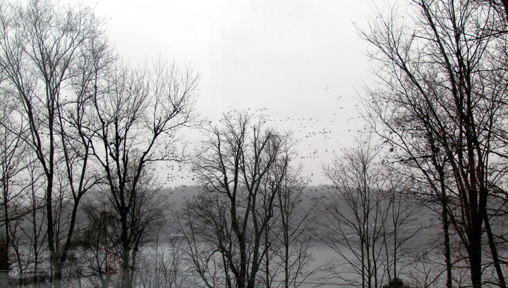 The Canada Geese are massing in the bay out in front of my house, snow is on the ground and it looks like it's staying so the geese are heading south.