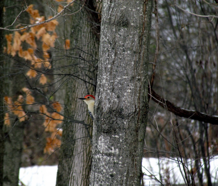 A chilly day and I noticed the bird feeders were empty again so I topped them up and the parade of birds began almost immediately. A Hairy Woodpecker,(correction Red bellied woodpecker) some Blue Jays, a few Nuthatches and the ever present ...