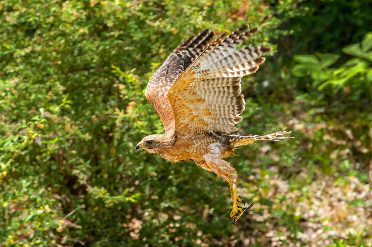 We love our hawks; our neighbors with chickens...not so much. Each Spring the hawks show up and scavenge for frogs in our Koi pond. If you look closely at the photo of the bird in flight, you'll see his/her frog lunch. We arbitrarily named the pair...