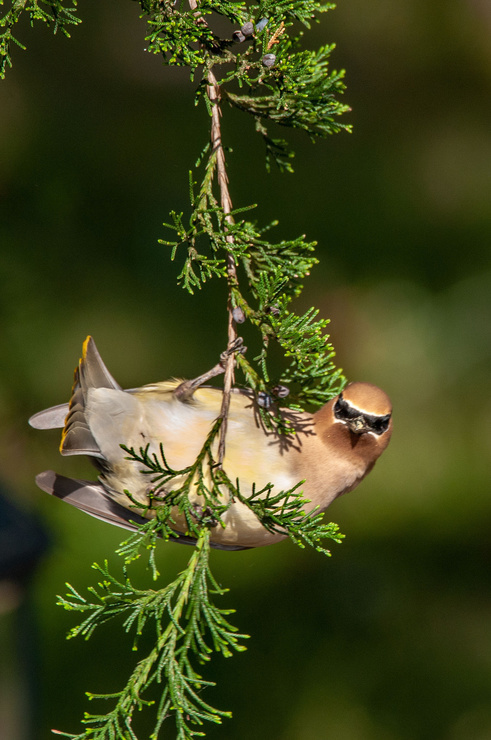 The best thing about this past April in Alabaster was the arrival of flocks of Cedar Waxwings to our property. These beautiful little birds just invaded our yard for several days. Here are a few snapshots. Hope you like 'em.