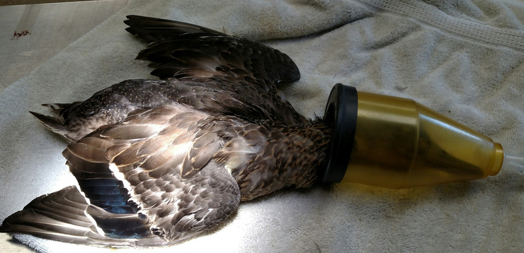 Duck surgery. This young Mallard is thought to have been injured by a snapping turtle. One of the vets I work with volunteered to remove the dead toe and clean up the necrotic tissue and the duck is doing great at a local rehab facility.