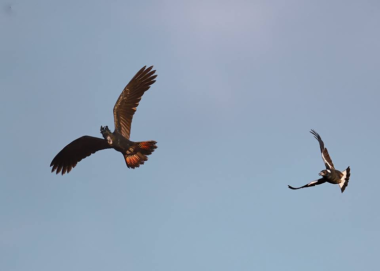 Once in a blue moon... ... i had to filch these rare pics: an australian magpie in relentless persuit of a red-tailed cockatoo. (thanks to western rosella man on fakebook)