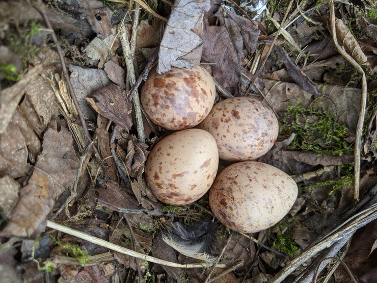 While I was out fishing today I accidentally spooked a woodcock on a nest. I snapped a pic and quickly left. Hopefully the adults return.