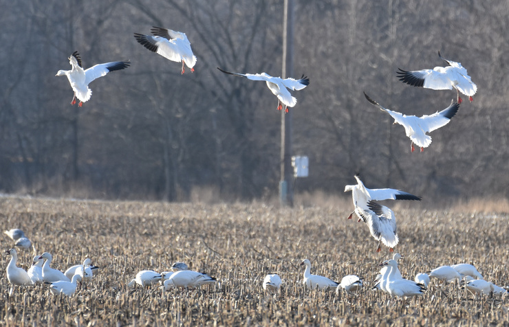 Migrating snow geese taking a rest and feeding in local cornfields. These beauties are one of my favorite signs that spring is almost here.