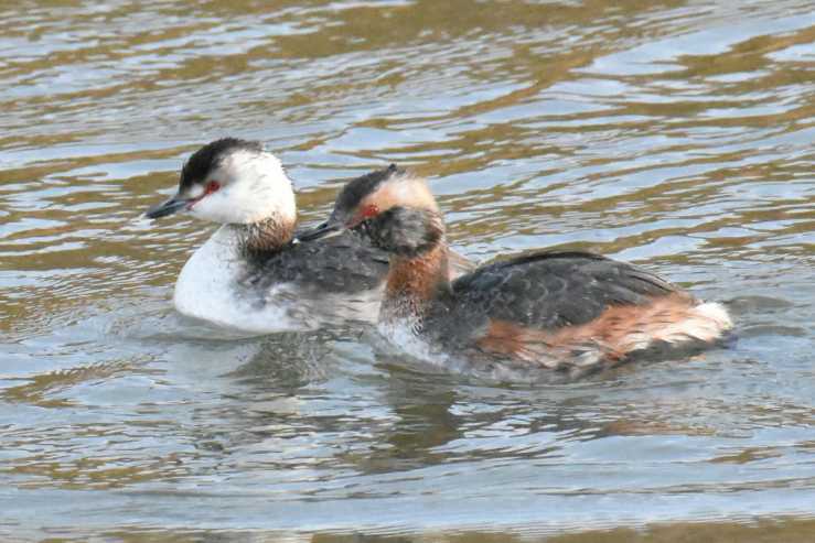 I'm pretty sure these are horned grebes in their intermediate plumage. Columbia County, PA; 4/7/18