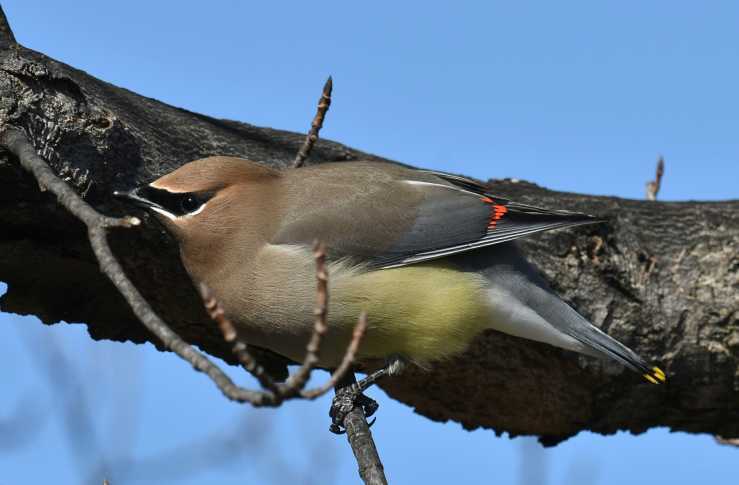 Cedar waxwings at Montour Preserve, 3/26/18.
