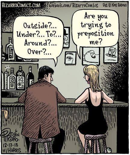 "I want to divorce my wife." "On what grounds?" "She is out all night, every night, going from bar to bar." "Are you saying she's an alcoholic or do you think she's cheating?" "No, she is looking for me."
