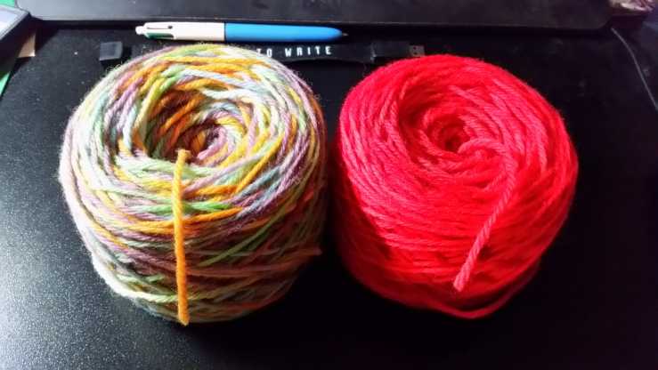 I dyed this yarn with food coloring and vinegar. I guess that counts as something handmade? Right? The red one I'm calling Redshift and the multi-colored Handpainted I'm calling Decomposition of Light. I'm teaching myself to dye yarn via books, ...