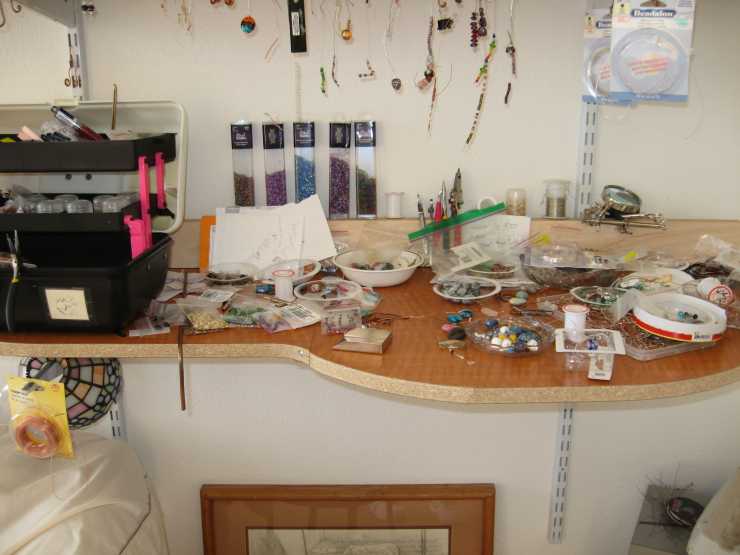 There had been a request for photos of handcrafters work areas, semi organized in one area a mess in the other area.