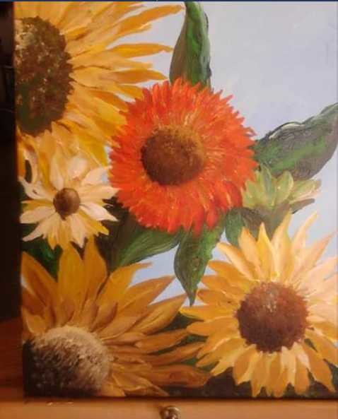 Just some of my works in progress...cause they're never really done...the crab is my attempt to control watercolor...the sunflowers my attempt with acrylics...