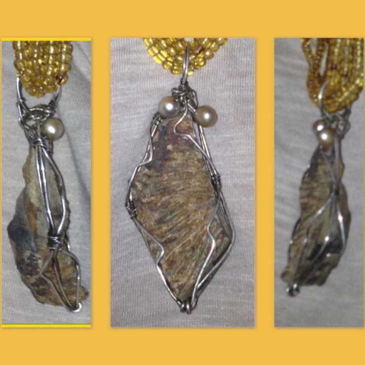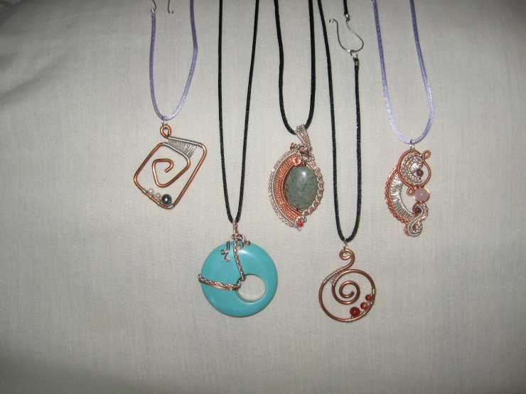 This is what I've been doing now - wire weave pendants. 20 and 24 gauge copper and silverplate wire, natural stone or glass beads.