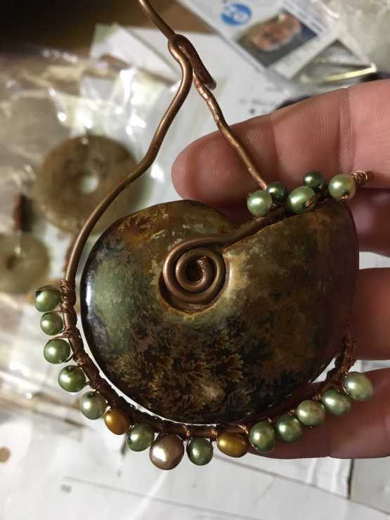 Arg. I feel like a post whore. I apologize, I am unable to add this picture to any of my older posts. This is an ammonite I found in Eastern Oregon. Actually, it’s my very first one. Wrapped in sterling, with pearls, on antique glass ...