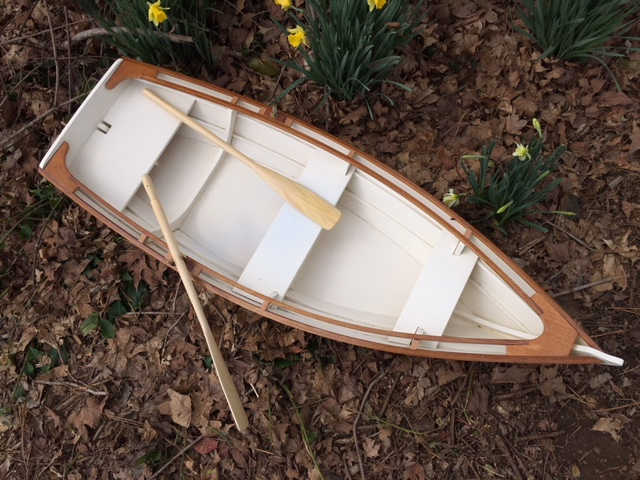 Quarter-scale wooden rowboat (from scratch; not a kit).