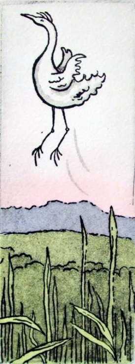 Hello, fellow creators :D hope I'm in the right place, as painting is what I mostly do... but also knitting, handsewing, printing. this one's printed from a tiny etching I did of an african bird I saw on a docu.