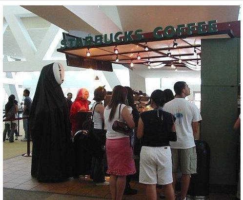 Me inside of my nohface...cosplay at Otakon queuing for coffee.
