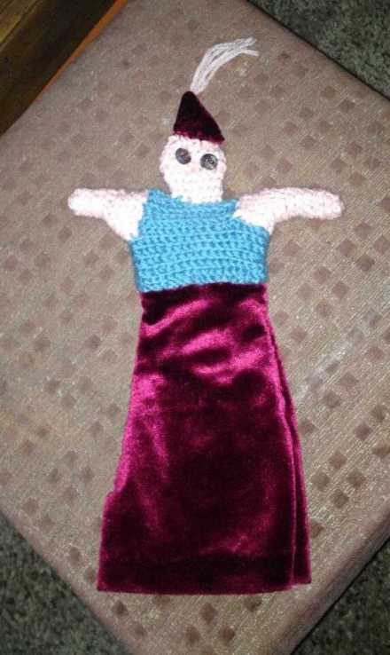 A puppet I crocheted for my granddaughter. A bunch of dog necklaces I donated to a rescue I volunteer at. A belly band I designed, and donated the pattern. Fun felt puppets. A sword belt with pouch, I made for my nephew. Which now I’ve ...