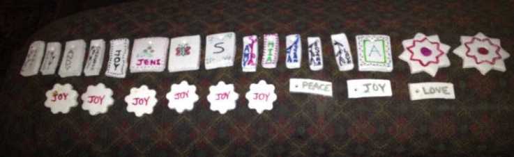 Crocheted snowflakes. I put them in holiday cards. And some ornaments I made one year.