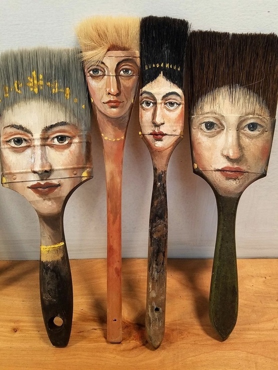 It did not give credit for the artist, but I thought it a lovely way to up-cycle old brushes. Turn upside down and you have beards!