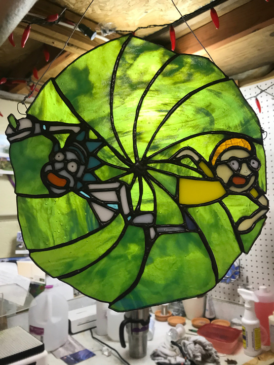 I’m a stained glass artist and decided to do a fun piece, so I did a Rick and Morty piece. Hope everyone likes it:)