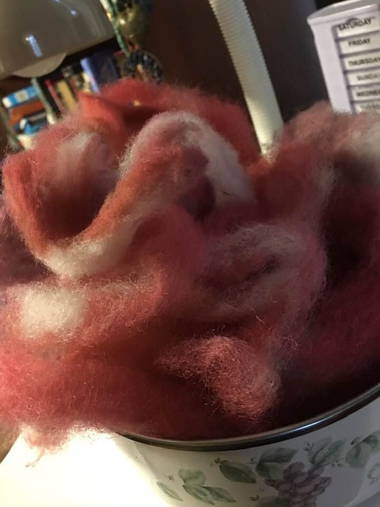 Here is the handfull of Cormo wool I dyed with this year's Easter egg dye. I'll be spinning it into thin yarn for Dream's winter mittens . The colors are slightly dim because we exhausted the dye bath with eggs this year, but I like these pastels. ...