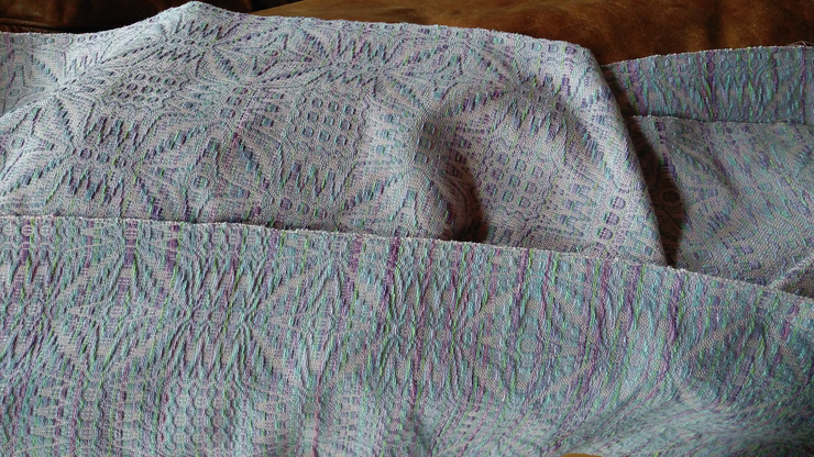 Some time ago I posted a pic of a weaving project I'd begun. Today I took it of the loom. I have approximately 9yds of fabric that's about 8 inches wide. any suggestions as to what I might do with it?.. In the pic you see both sides of the ...