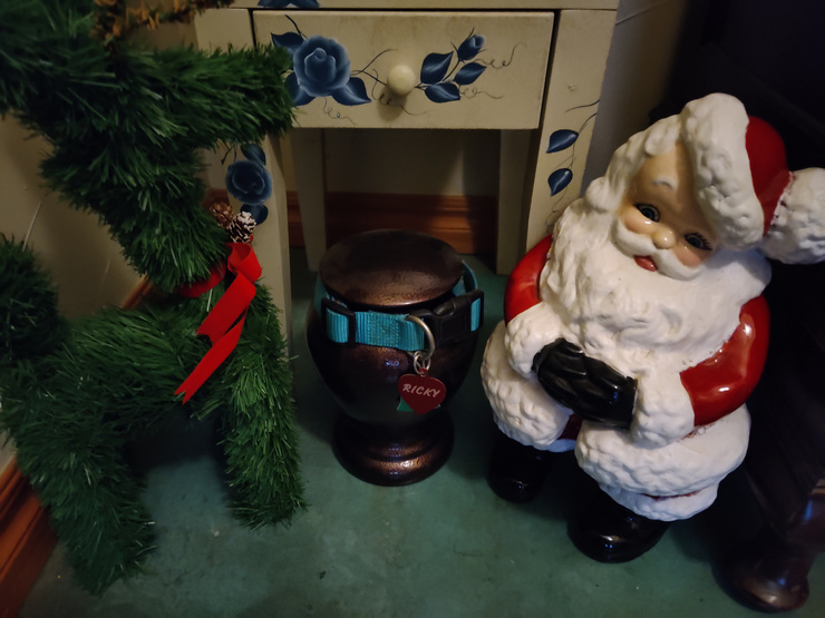 Posted by LorajayMy precious Rickie was cremated 3 years ago and now resides in the urn pictured.
