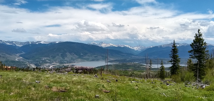 Facing east. Dillion Lake and I-70 snaking up towards the Eisenhower Tunnel on the left side of the photo.
