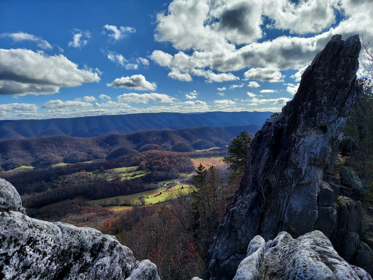 Dragon's Tooth and the Catawba Valley, west of Roanoke, VA. 4.5 miles. September weather in November.