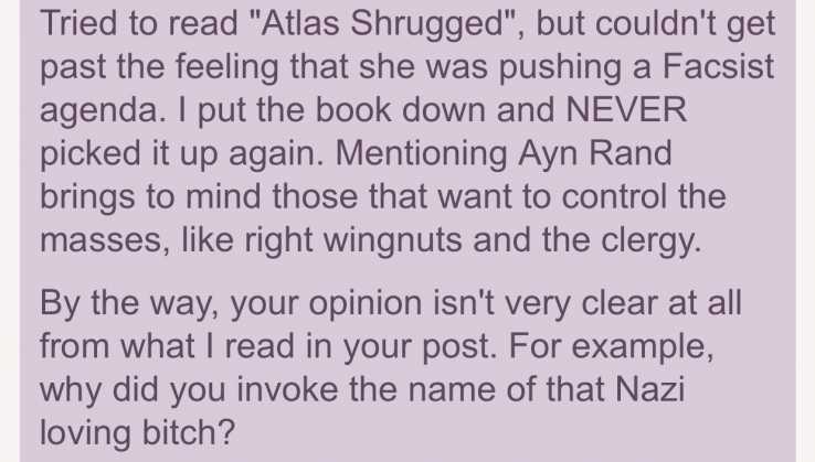 Worst take on Ayn Rand yet? I figure this is a good place to share with it’s overlap with libertarian views and how people can intentionally and harmfully obscure positions they disagree with. Your thoughts?