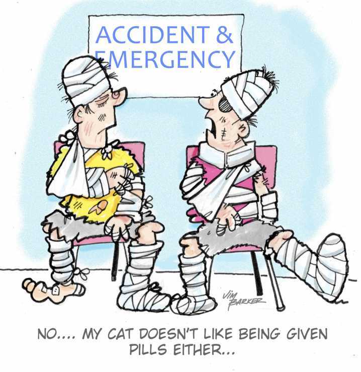 Origin of this piece is ... well ... unknown. ;-) HOW TO GIVE YOUR CAT A PILL: 1- ) Pick cat up and cradle it in the crook of your left arm as if holding a baby. Position right forefinger and thumb on either side of cat's mouth and gently apply ...
