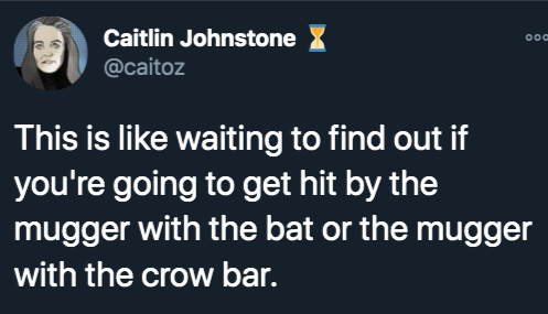 Will you know your sin of feeling like you're winning when you're actually loosing again? Good luck with that. May your favorite capitalist war hawk criminal win.