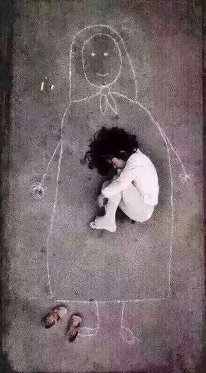 A photograph that moved the world! In Iraq, a little girl drew a picture of her mother on the floor of her orphanage. She carefully took off the shoes, lay down on mother's chest and fell asleep... I really don't know how to use human language to ...