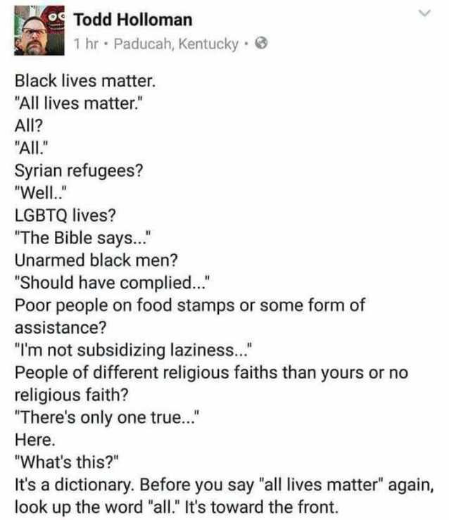 So, I have a relative that is a friend on FB, his mom was my cousin. Can't choose who you're related to. I knew he was a conservative.... Usually he makes snarky remarks on some of my posts. So, devil got into me tonight, and I took look on his page....