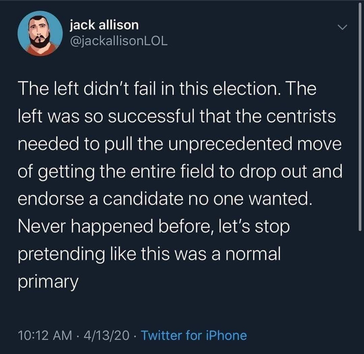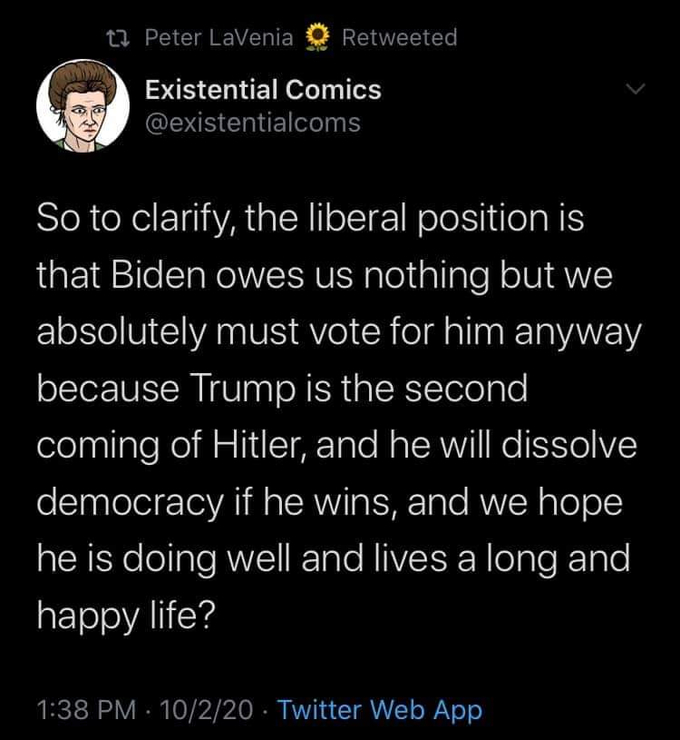 Where Is Biden's Ground Game? "As Biden faces an enthusiasm gap in the polls, there are signs the campaign’s field operation is lagging" :-----: Me: Like they want to lose. I think their endgame is to saddle progressives with their loss in ...