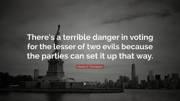 "There’s a terrible danger in voting for the lesser of two evils because the parties can set it up that way.” Hunter S. Thompson
