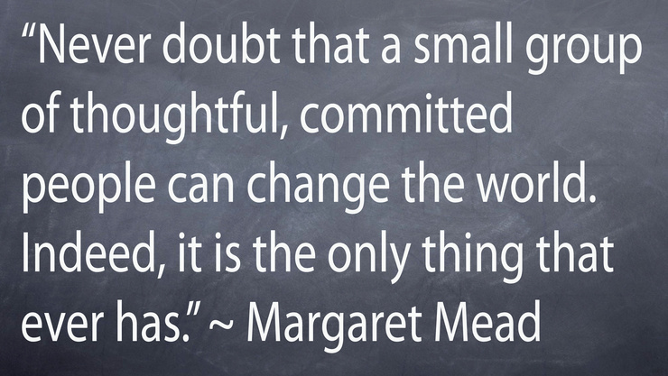 "Never doubt that a small group of thoughtful, committed, citizens can change the world. Indeed, it is the only thing that ever has." Margaret Mead