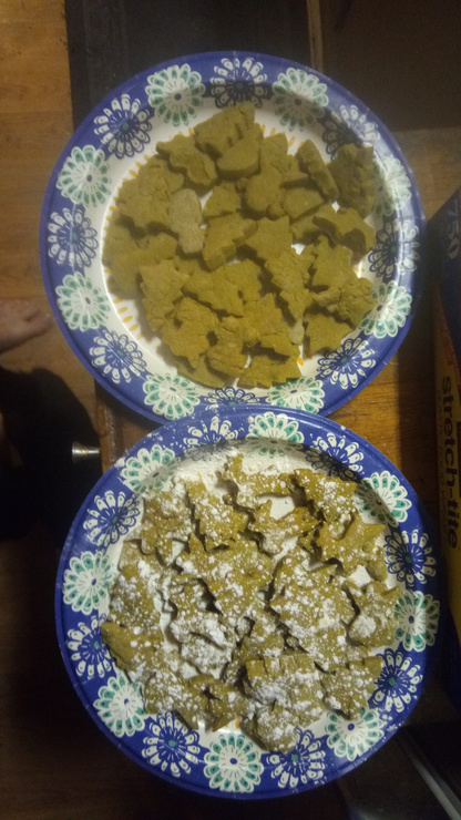 Just had a cookie emergency. One of the moms from my kids school came over with an invite my kids to a ugly was party for tomorrow. So my kids and I just spent the last hour making German spritz they came out olive green. Mostly because I mixed the ...