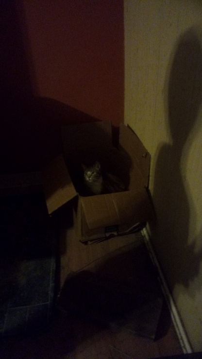 You have heard of jack in the box, I have cat in the box. She always shies away from me because I had once given her a shower in the sink. She was covered in poop. She always comes if I call for treats though.